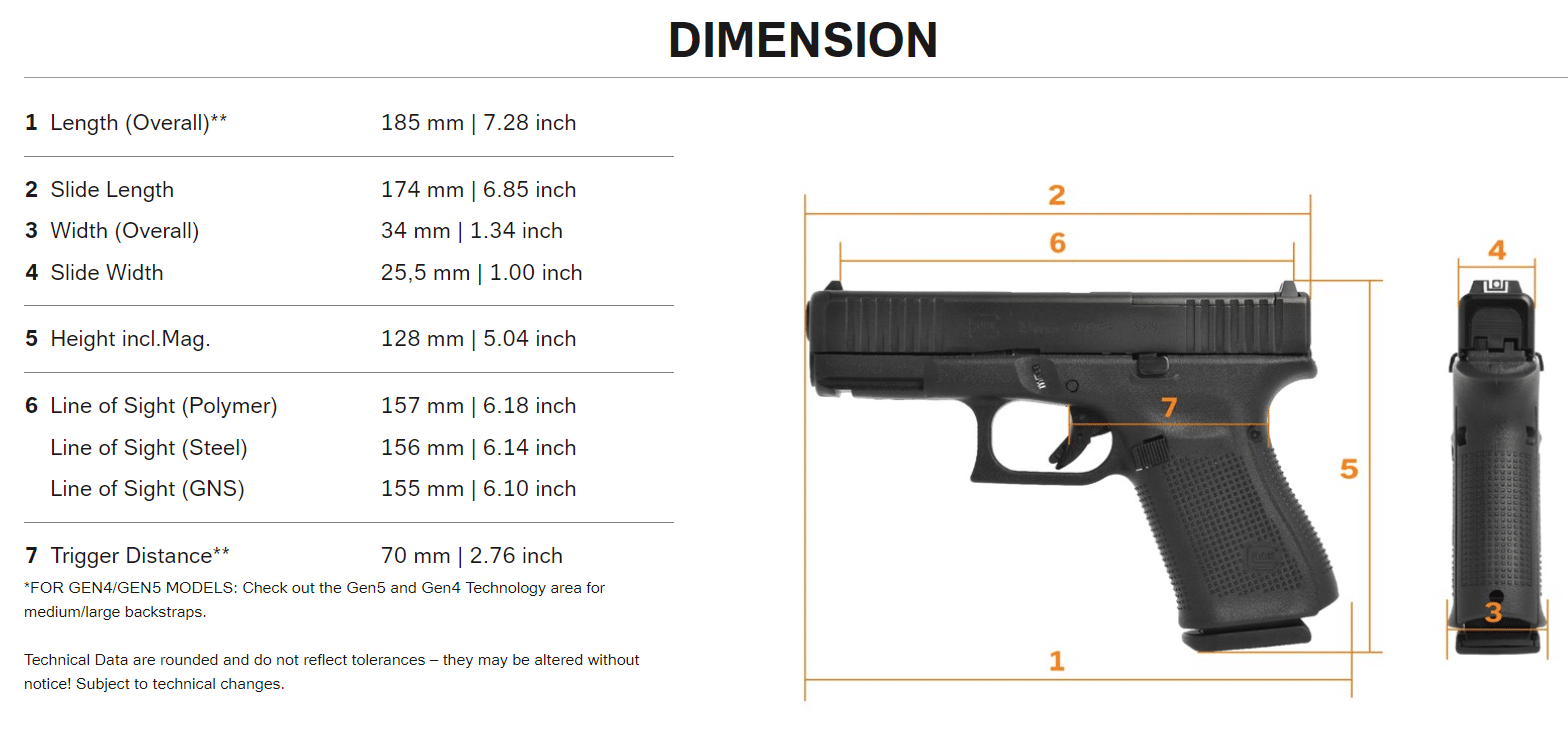 | כוונות | כוונת יצרן גלוק; קדמית נקודה לבנה, כוונת U אחורית |